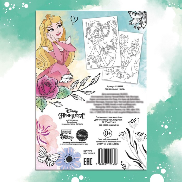 Раскраска, А5, 16 стр., Принцессы — Характеристики