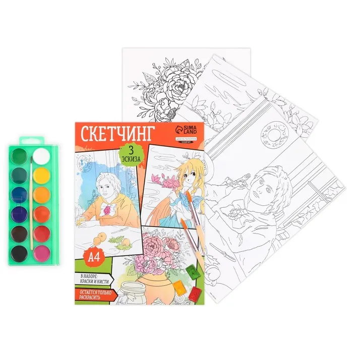 Раскраска акварелью с красками «Мои первые эскизы», А4 — Характеристики