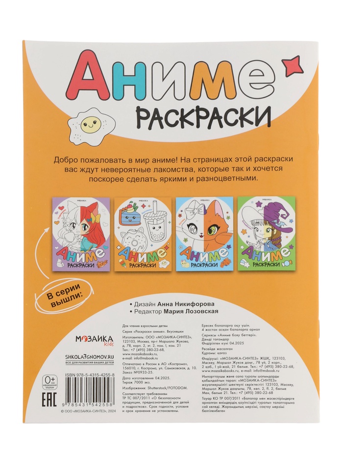 «Аниме. Вкусняшки» станут отличным подарком для маленьких поклонников аниме и сладостей. Раскраска идеально подойдёт для домашних занятий, путешествий или как часть подготовки к праздникам. Она не только развлекает, но и учит ребёнка быть внимательным, терпеливым и креативным. Позвольте малышу погрузиться в мир творчества вместе с любимыми героями!