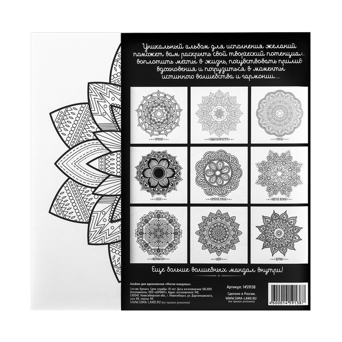 Раскраска - антистресс, альбом «Магия мандалы» 16стр. — Характеристики