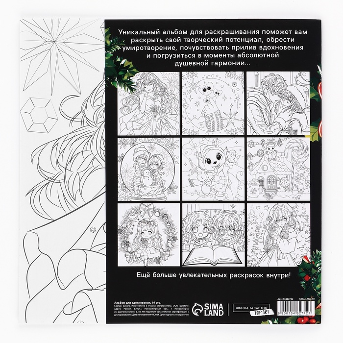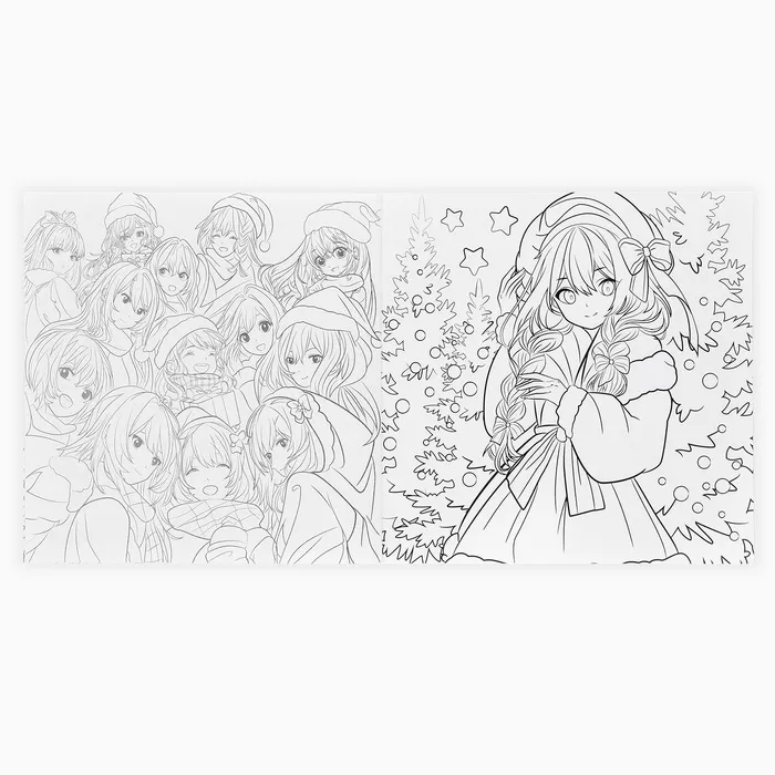 Раскраска антистресс на новый год. Альбом для вдохновения «Новый год! Аниме», 19 страниц — Характеристики