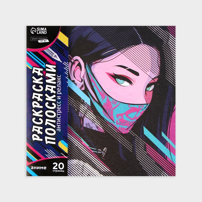 Раскраска-антистресс по полоскам «Девушка в маске», 21 х 21 см — Характеристики