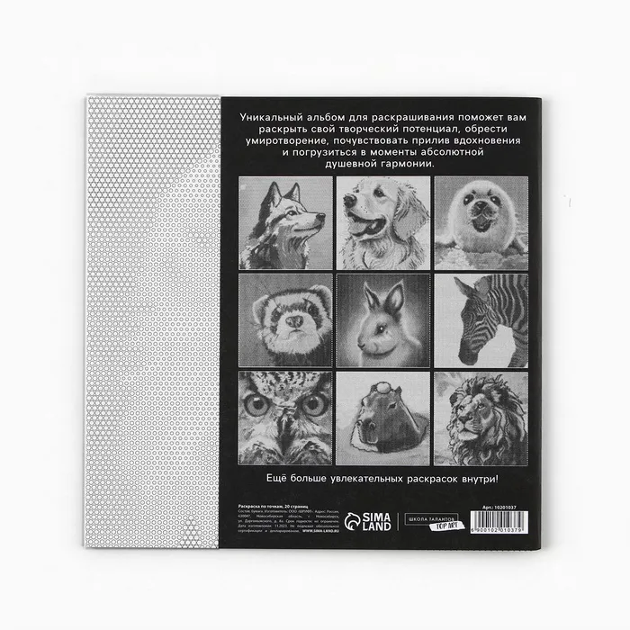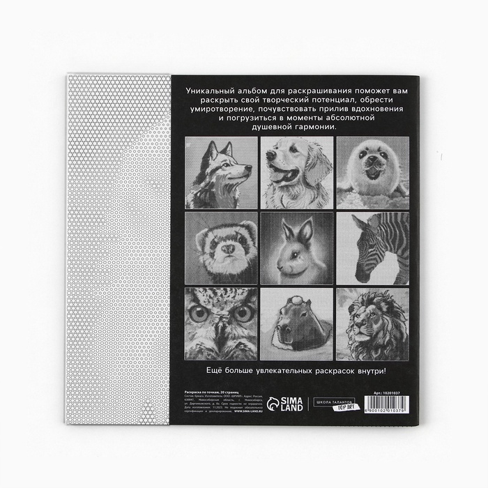 Раскраска-антистресс по точкам «Любимые животные», 20 стр — Характеристики