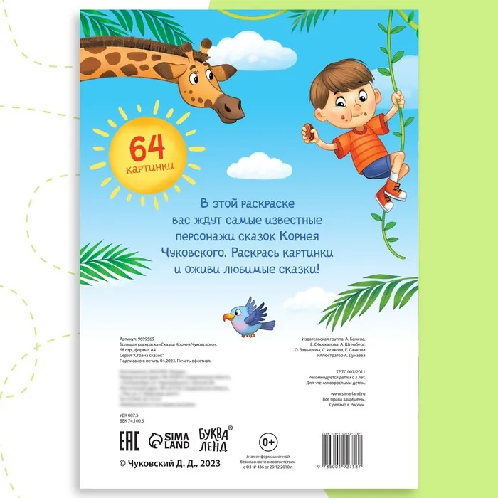 Раскраска большая «Сказки Корнея Чуковского», 68 стр., формат А4 — Характеристики