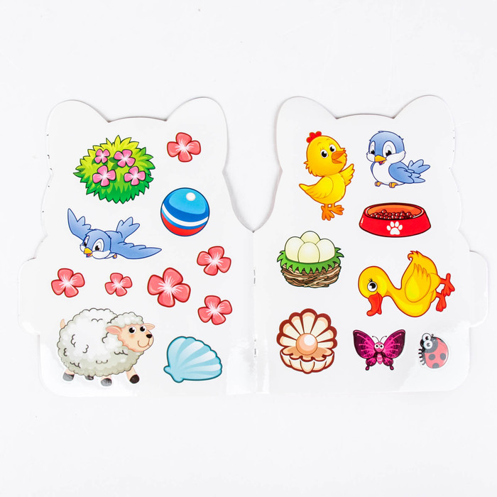 - Внутри есть 2 листа с наклейками разных размеров.