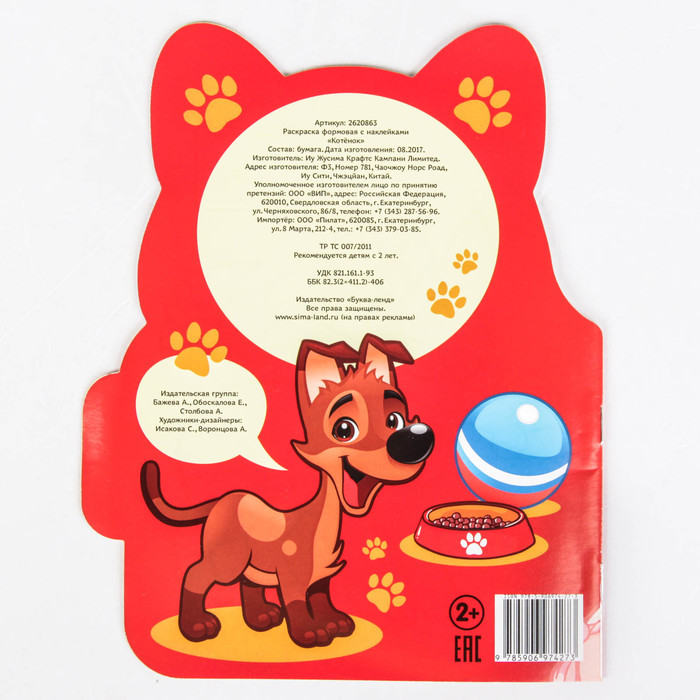 Раскраска детская «Котёнок», 16 стр., с наклейками — Характеристики