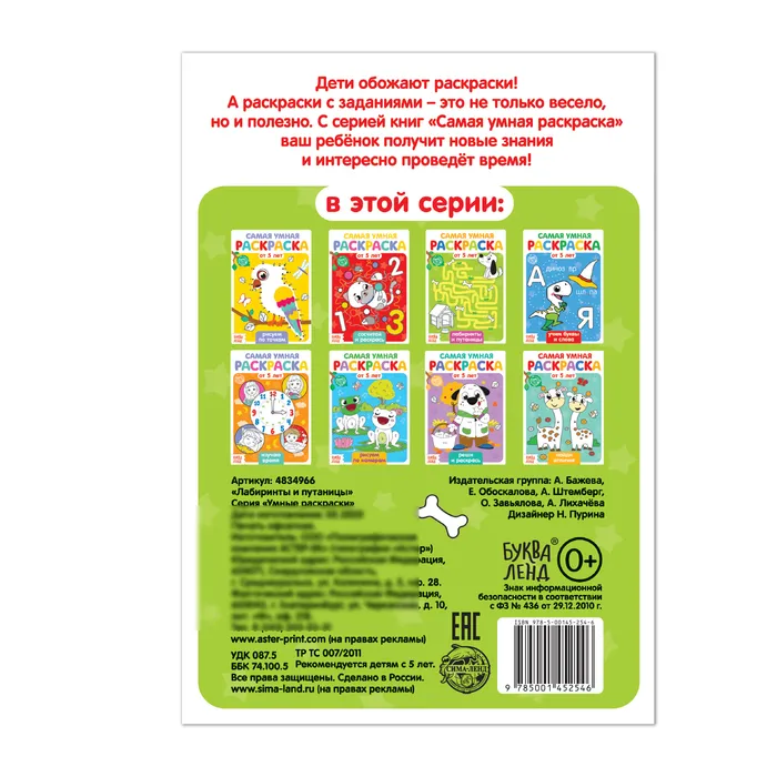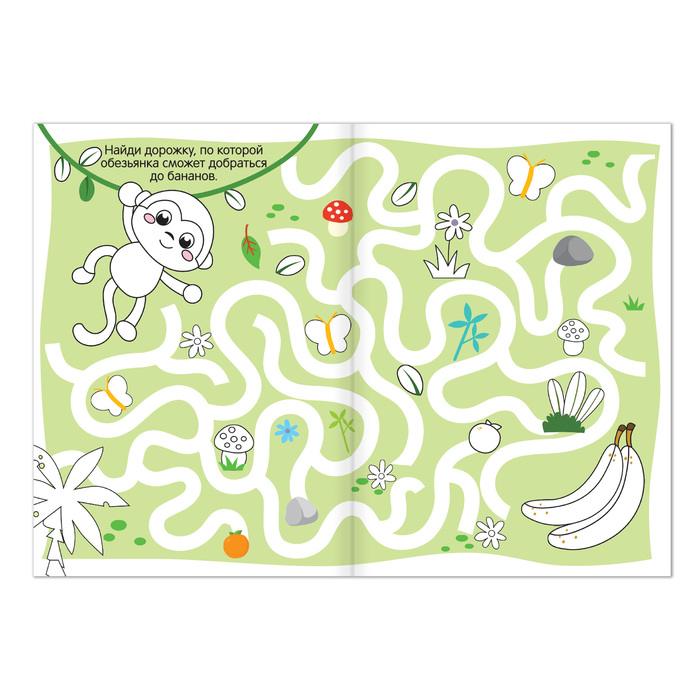 - На каждом развороте книги есть лабиринт с интересным заданием и элементы для раскрашивания.