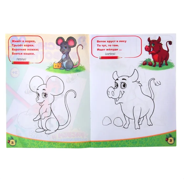 Раскрашивание помогает ребёнку развивать мелкую моторику, внимание и аккуратность. Каждая страница содержит загадки, которые малыш может разгадывать самостоятельно или с родителями, запоминая их для игр с друзьями. Рисуя пейзажи вокруг животных, ребёнок учится создавать свой собственный мир, пробуждая творческое мышление. Это занятие не только тренирует руку, но и помогает придумывать новые истории, делая процесс ещё более увлекательным.
