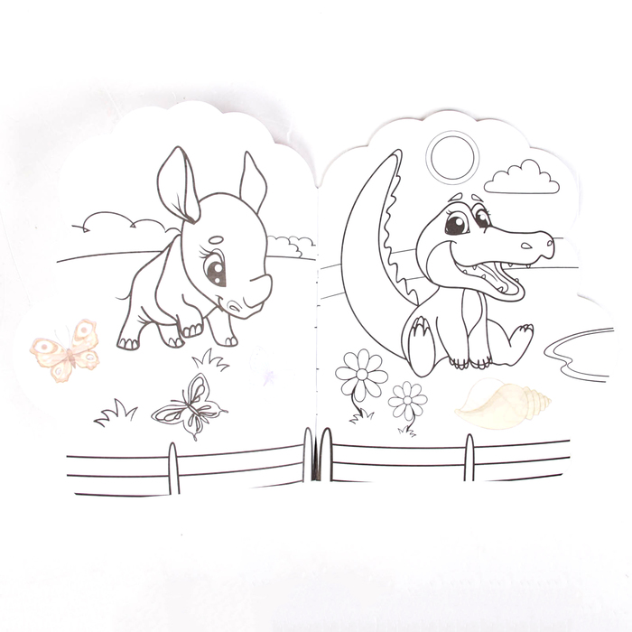 Раскраски с наклейками — это двойное удовольствие для ребёнка! Малыш познакомится с милыми персонажами и сделает цветными все картинки.