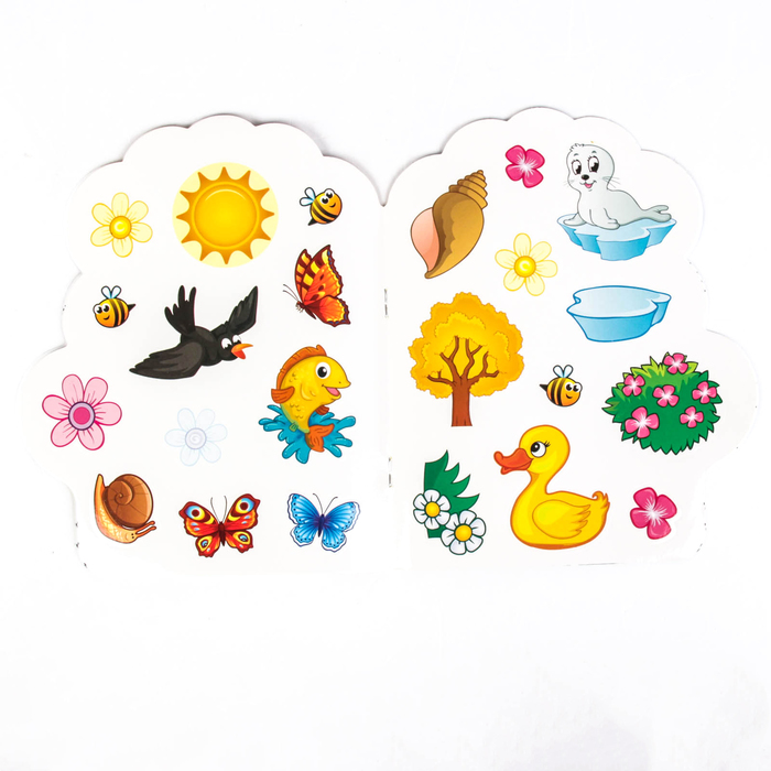 - Внутри есть 2 листа с наклейками разных размеров.