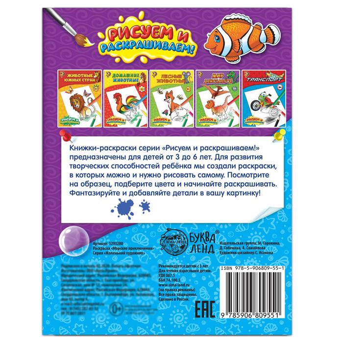 Эта книга станет идеальным выбором для детей, которые любят морскую тематику и хотят творить своими руками. Компактный размер и мягкая обложка делают её удобной для использования в любом месте. Подходит как для самостоятельных занятий, так и для совместного времени с родителями. Раскраска станет отличным подарком для малышей, которые мечтают о приключениях в море и хотят делиться своими историями с друзьями.