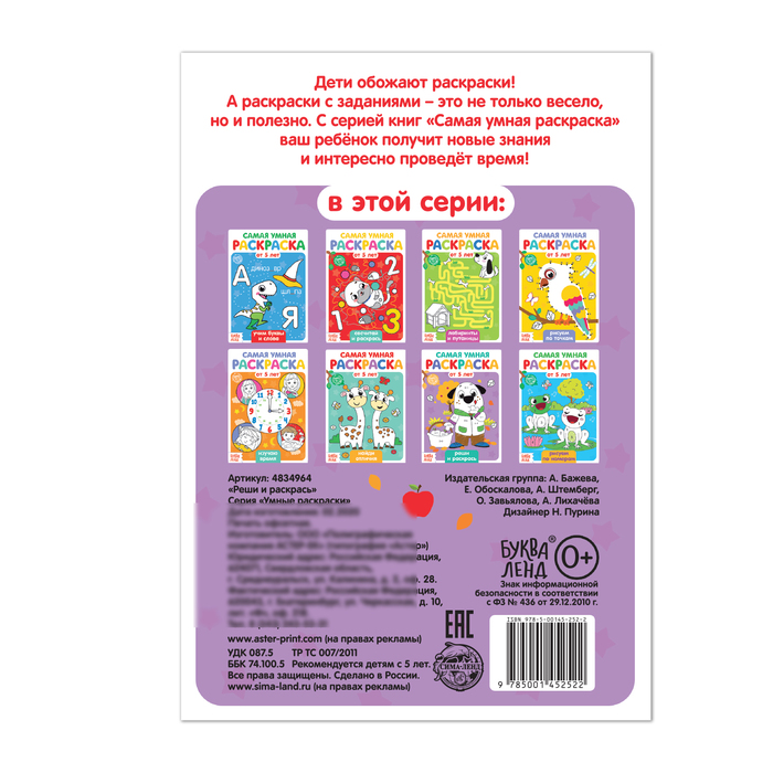 Раскраска детская «Реши и раскрась», 12 стр. — Характеристики