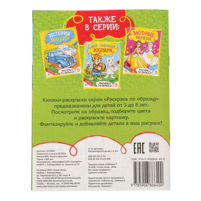 Кроха с удовольствием будет раскрашивать интересные картинки, а образцы помогут ему правильно подобрать нужные цвета.
