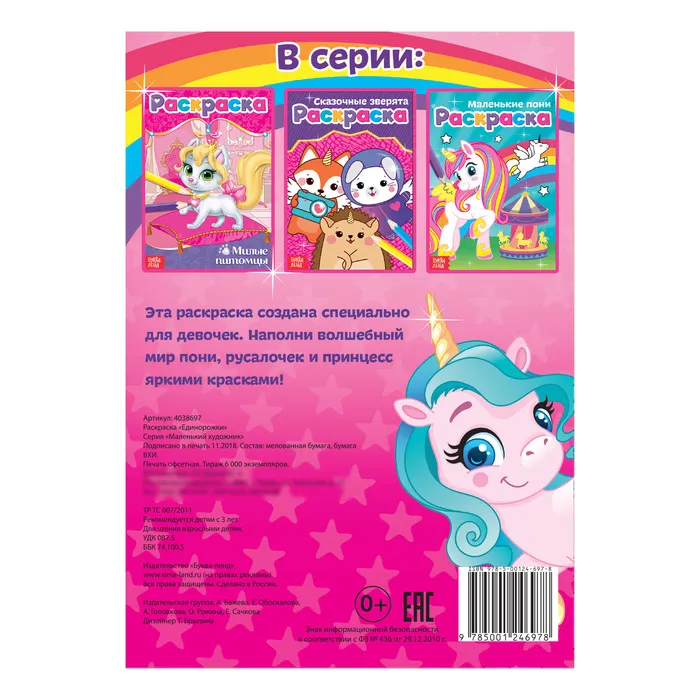 Раскраска для девочек «Единорожки», А5, 12 стр. — Характеристики