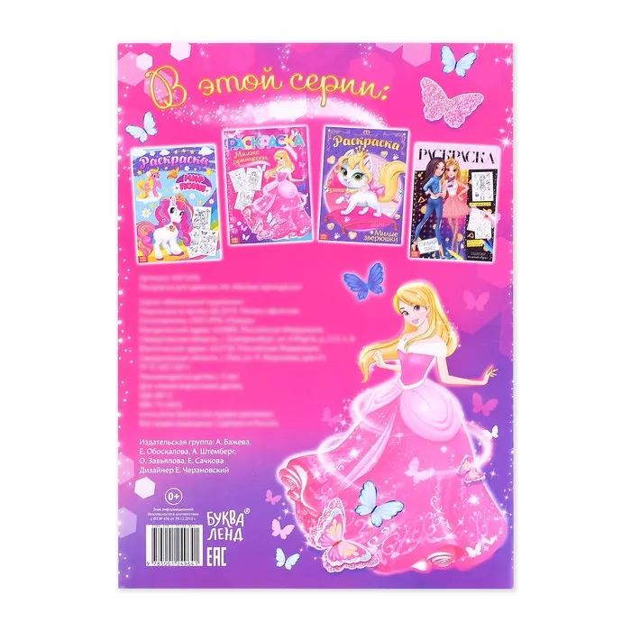 - Каждая картинка — это чистый холст для творческих идей! Кроха сможет придумать свои уникальные цветовые сочетания и создаст для каждой сказочной красавицы уникальный образ.
