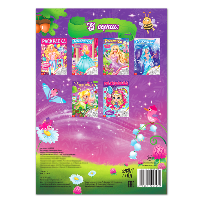 Раскраска «Сказочные феи» познакомит малышку с волшебным миром лесных нимф и их друзей. Малышка сможет их раскрасить карандашами, красками или фломастерами. Страницы и обложка выполнены из бумаги.
