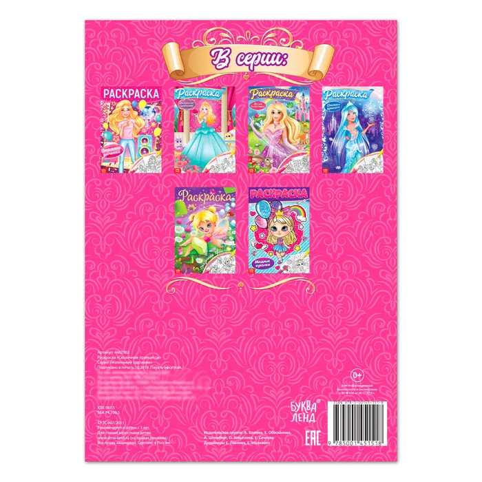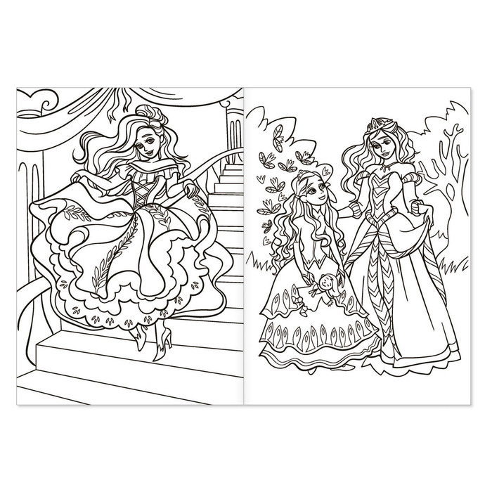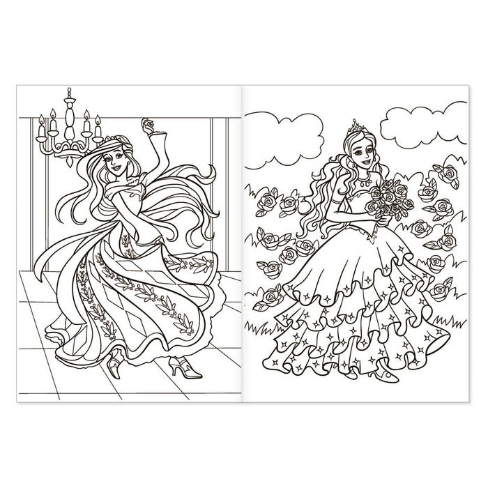 Раскраска «Сказочная принцесса» — книга с контурными картинками волшебного королевства, царевны в прекрасных нарядах, замка. Малышка сможет их раскрасить карандашами, красками или фломастерами. Страницы и обложка выполнены из бумаги.