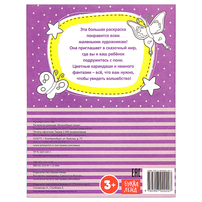Раскраска для девочек «Волшебные пони», длинная — Характеристики
