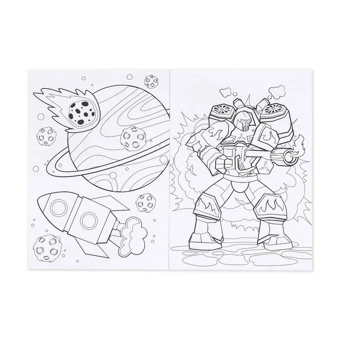 - Каждая страница — это чистый лист, на котором ребёнок может создать свой уникальный мир, развивая воображения, раскрасив его яркими красками.