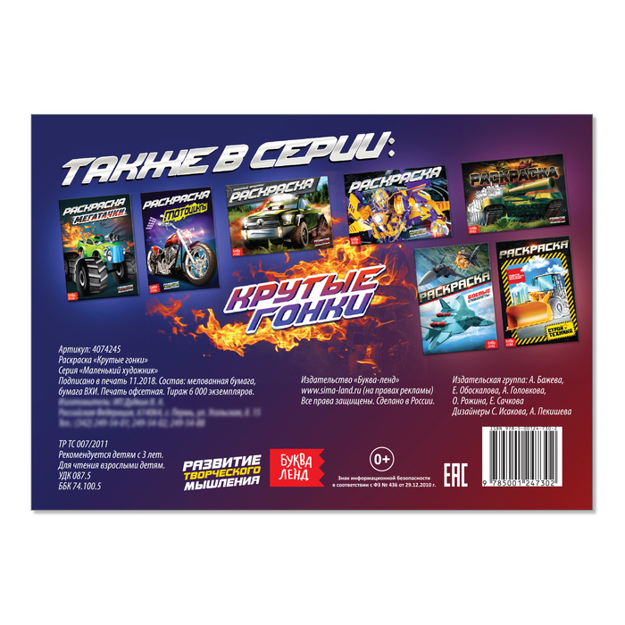 Раскраска для мальчиков «Крутые гонки», А5, 12 стр. — Характеристики