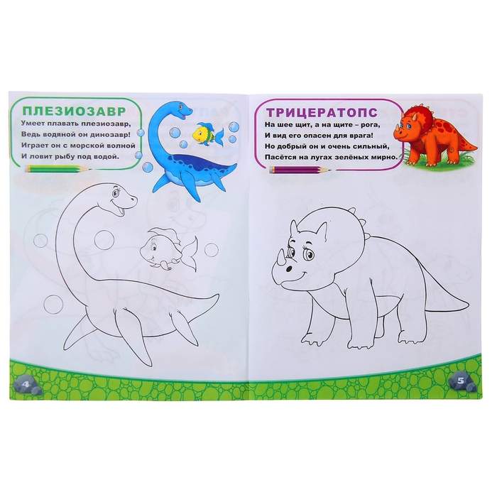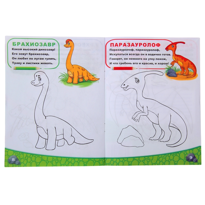 Раскрашивание помогает ребёнку развивать мелкую моторику, внимание и аккуратность. Каждая страница предлагает не просто раскрасить картинку, но и дорисовать собственные элементы, как подскажет фантазия. Вместе с малышом можно посмотреть на образец, подобрать цвета и начать создавать свой собственный мир динозавров. Такие занятия учат ребёнка быть внимательным, пробуждают воображение и тренируют художественный вкус.