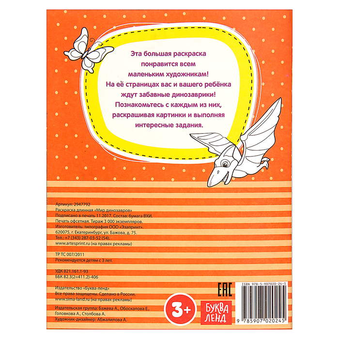 Раскраска для мальчиков «Мир динозавров», длинная — Характеристики