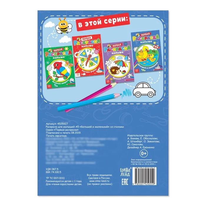 Раскраска для малышей «Большой и маленький» со стихами, А5 — Характеристики