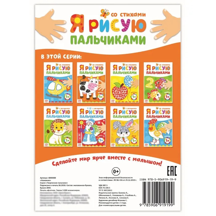 Книга «Рисуем пальчиками» имеет удобный формат для малыша, дополнена красочными картинками и интересными заданиями.