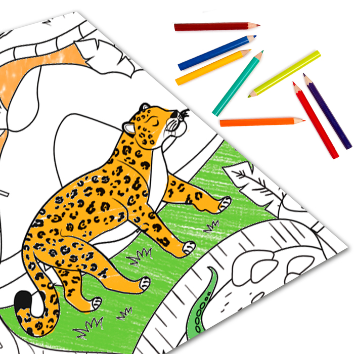 - Плакат большого размера предоставляет обширное поле для раскрашивания, где малыш может экспериментировать с карандашами или акварелью.