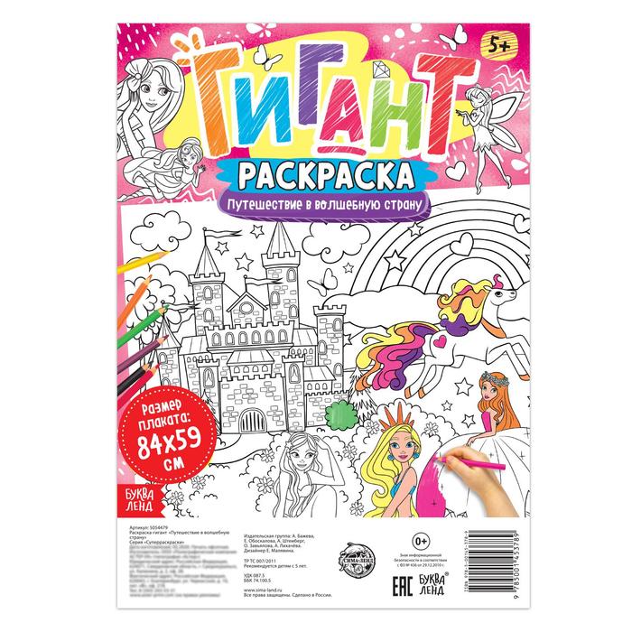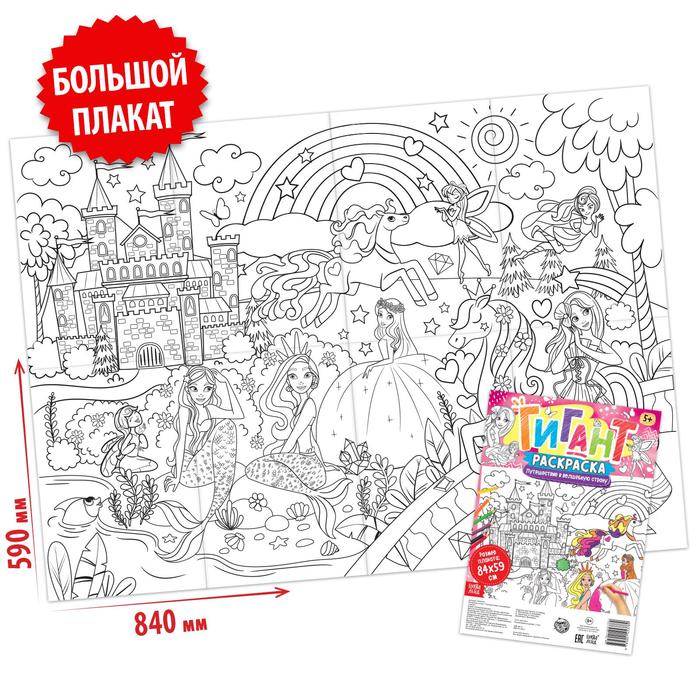Раскраска - гигант для девочек «Путешествие в волшебную страну», 59 × 84 см — Характеристики
