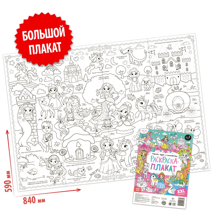Раскраска - гигант для девочек «Страна чудес и волшебства», 59×84 см — Характеристики