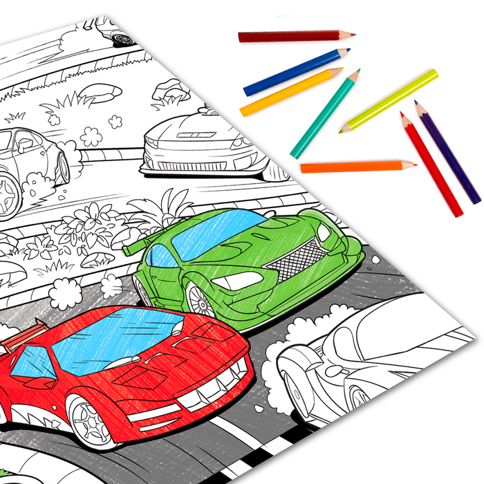 Раскраска гигант «Гоночный трек» — это отличная возможность для детей весело провести время, развивая моторику и фантазию.