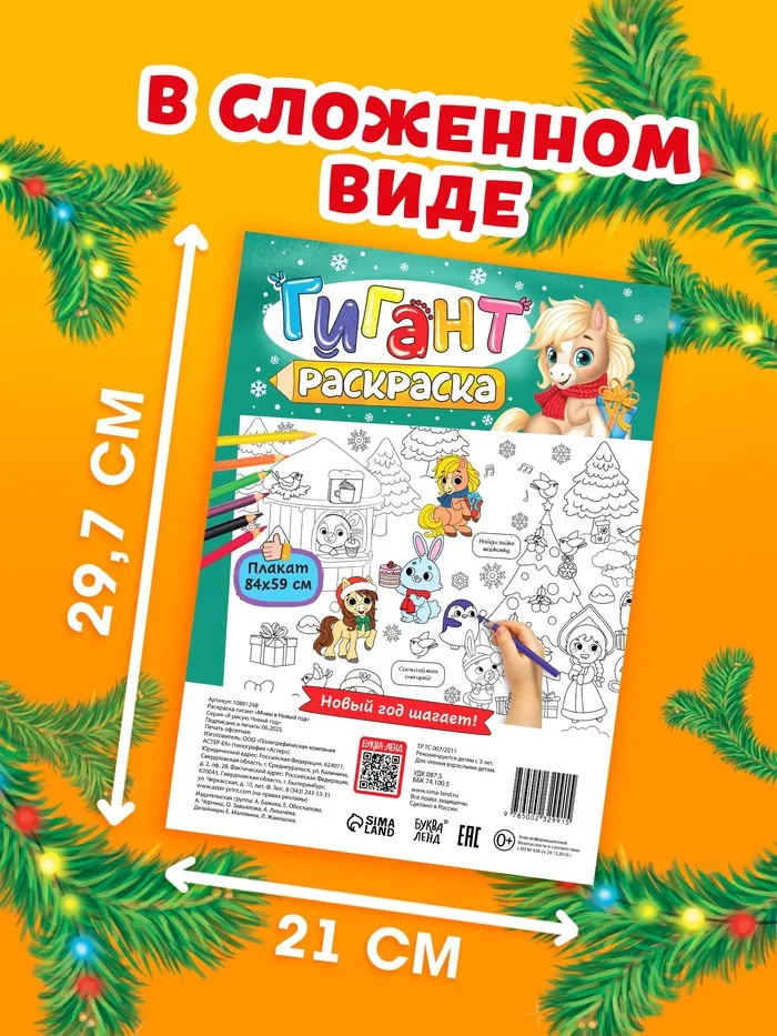 Гигантская раскраска «Мчим в Новый год» — это большое праздничное полотно, наполненное волшебством зимы и ожиданием чудес. На ней ребёнок найдёт захватывающие сюжеты с Лошадью, символом 2026 года, и другими новогодними мотивами. Этот плакат станет не только источником радости, но и способом развить воображение, мелкую моторику и внимание к деталям.