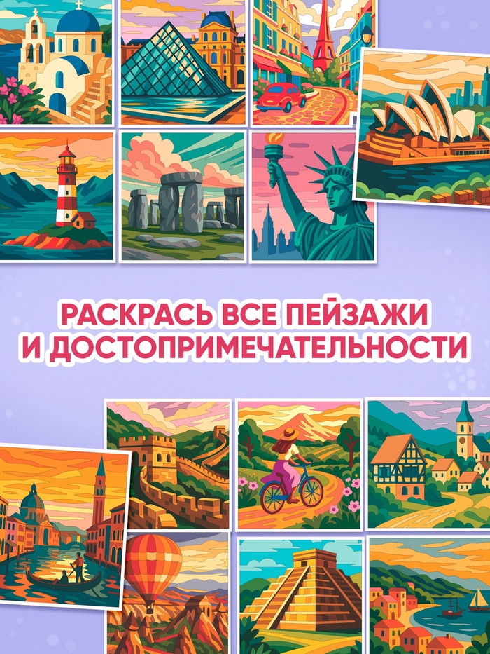 Откройте для себя мир, не выходя из дома. Эта раскраска по номерам предлагает увлекательное путешествие по знаковым местам планеты: от Эйфелевой башни до пирамид Гизы. Каждая из 14 картин — это не просто рисунок, а маленькое приключение, которое вы создаете сами.