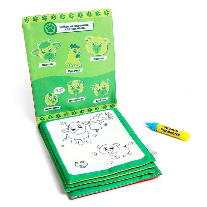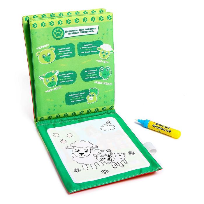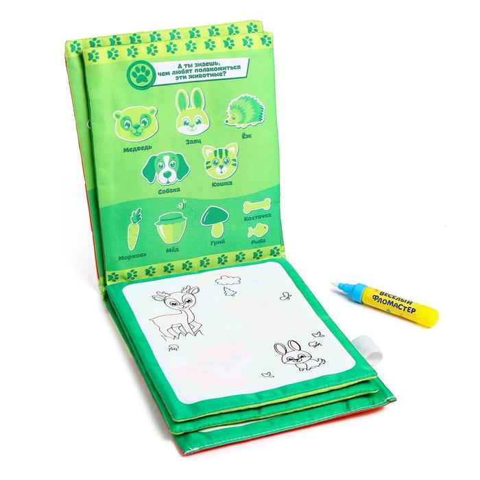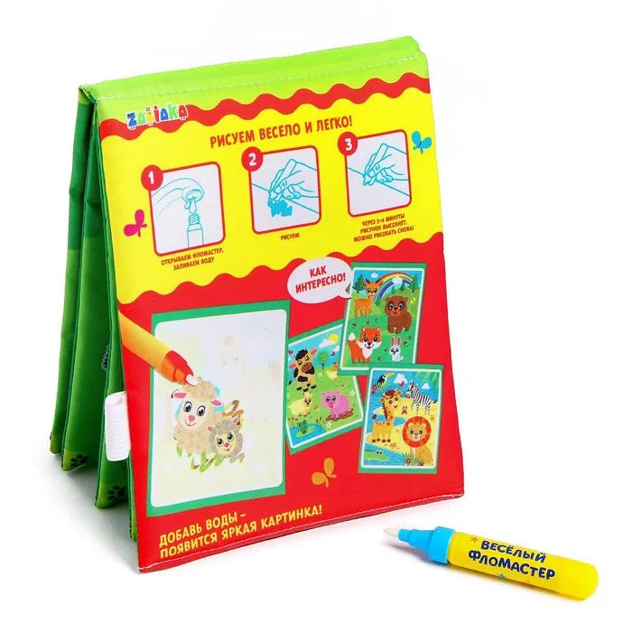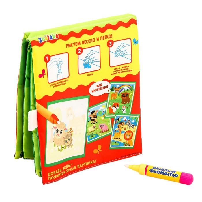 Раскраска - книжка детская водой «Весёлые животные», многоразовая, с водным маркером — Характеристики