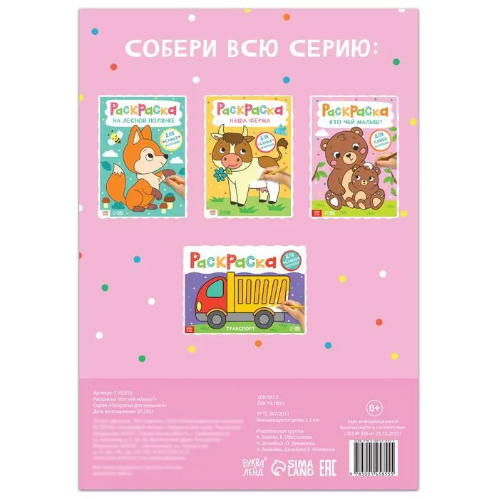 Раскраска «Кто чей малыш?», 16 стр., формат А4 — Характеристики