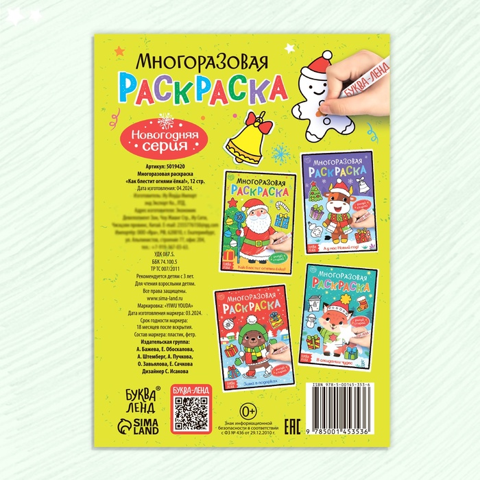 Раскраска многоразовая «Как блестит огнями ёлка!», 12 стр., с маркерами — Характеристики