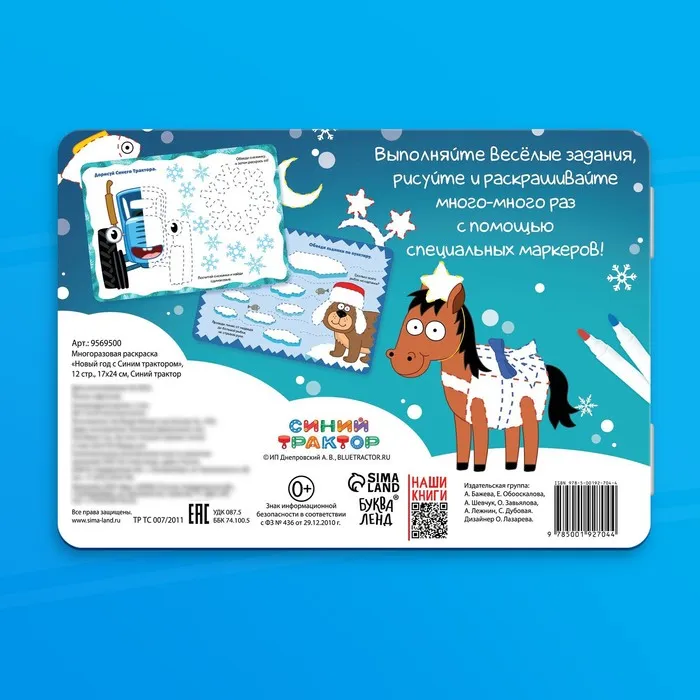 Раскраска многоразовая «Новый год с Синим трактором», 5 маркеров, 12 стр., Синий трактор — Характеристики