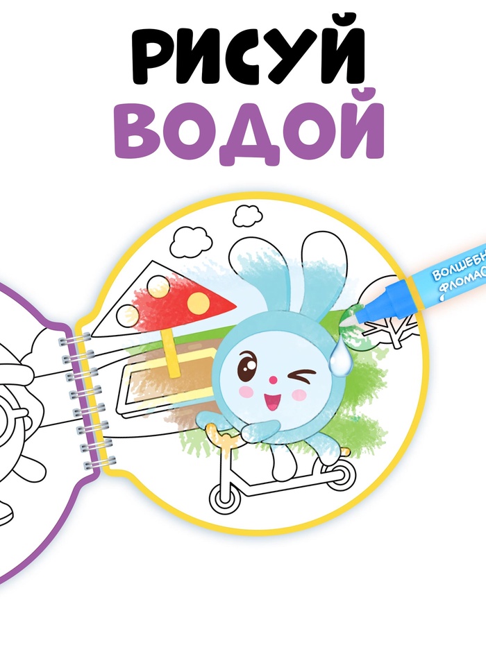 Раскраска многоразовая «Рисуй водой. Идём гулять!», 10 стр., маркер, Малышарики — Характеристики