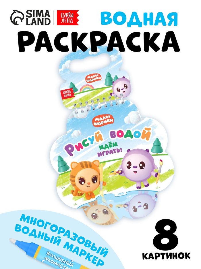 Раскраска многоразовая «Рисуй водой. Идём играть!», 10 стр., маркер, Малышарики — Характеристики