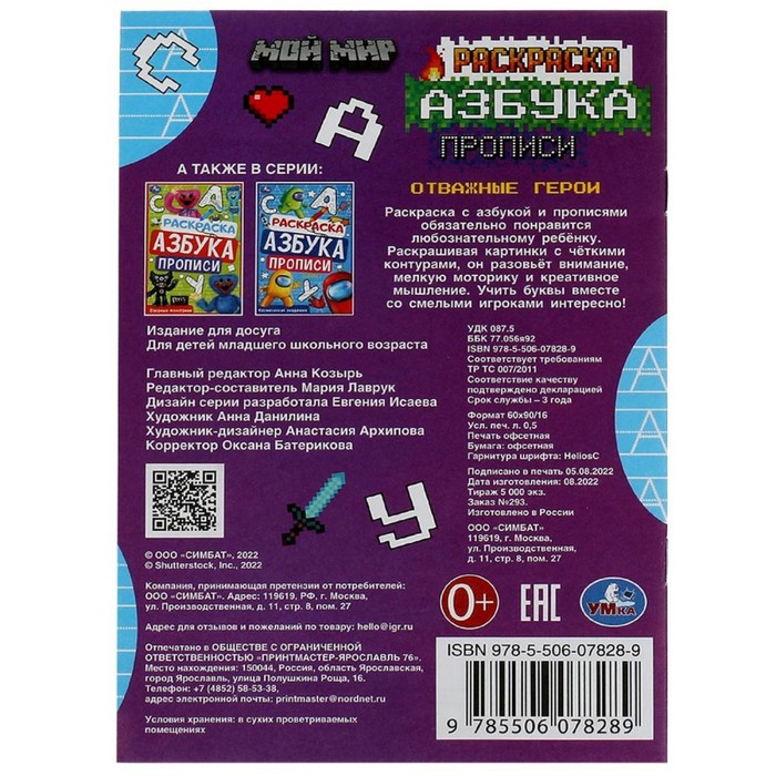 Раскраска «Мой мир. Отважные герои» 8 стр., с азбукой и прописями — Характеристики