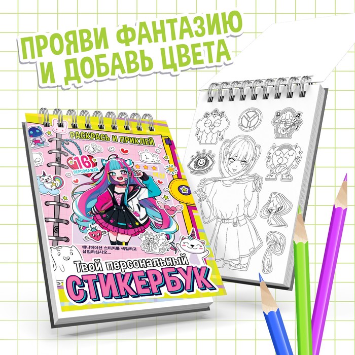 Раскраска - наклейки «Твой персональный стикербук», альбом, Аниме