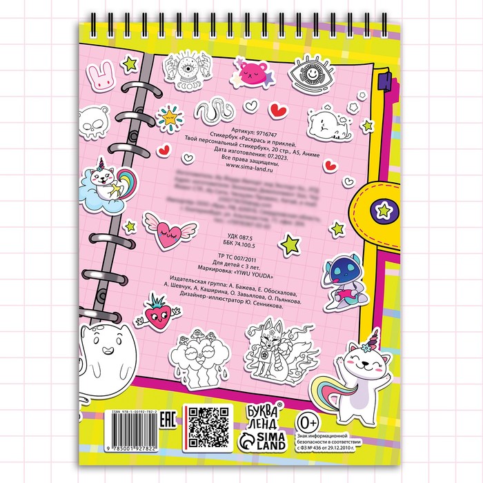 Раскраска - наклейки «Твой персональный стикербук», альбом, Аниме — Характеристики