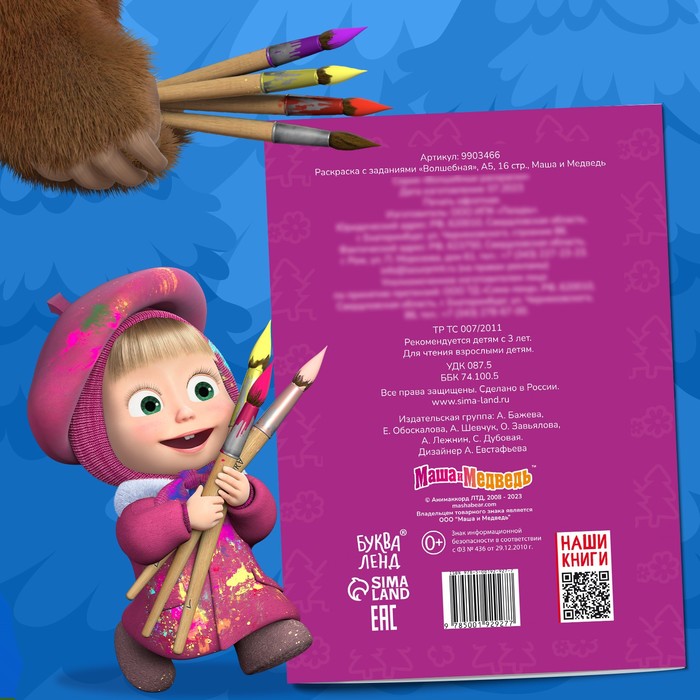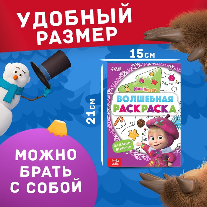 Раскраска новогодняя с заданиями «Волшебная», А5, 16 стр., Маша и Медведь — Характеристики