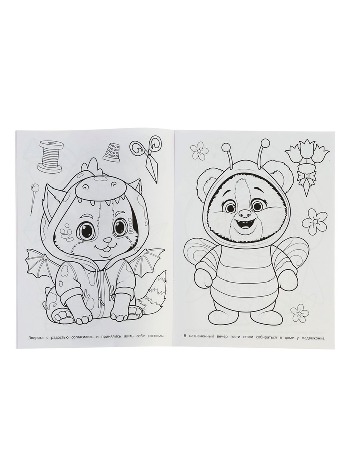 Крупные контуры и дружелюбные сюжеты позволяют ребёнку раскрашивать без спешки и стресса. А ещё — придумывать, о чём шепчутся герои, какие истории они рассказывают друг другу и что готовят на ужин. Так творчество становится частью игры.