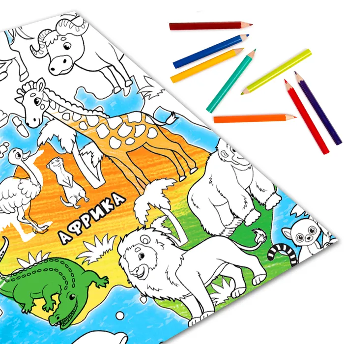Обучающий плакат-раскраска «Животные мира» — это отличный способ познакомить детей с обитателями разных уголков планеты.