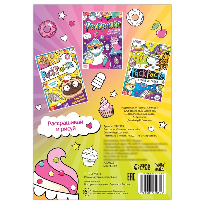 Раскраска «Планета сладостей», 12 стр., А5 — Характеристики