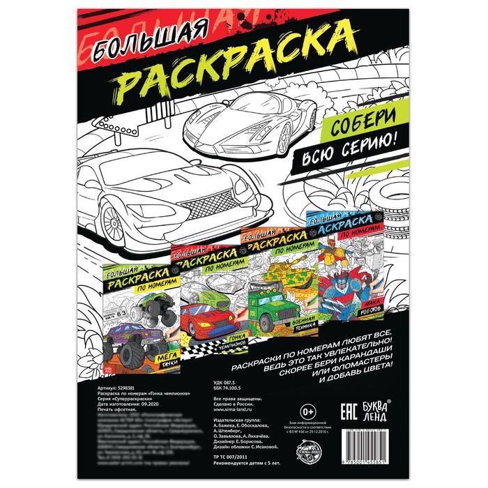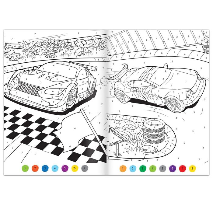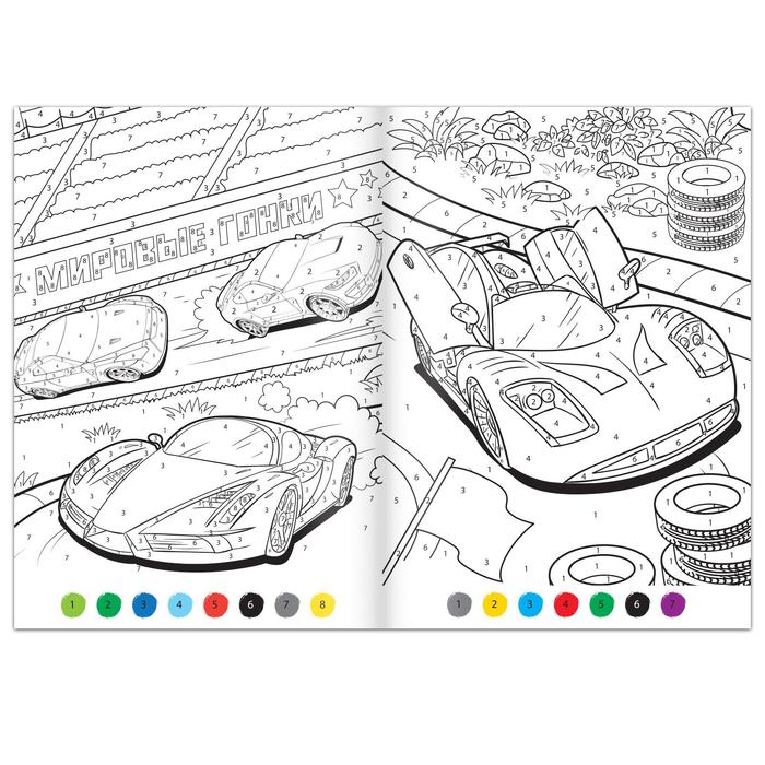 Раскраска по номерам «Гонка чемпионов», 16 стр., формат А4 — Характеристики