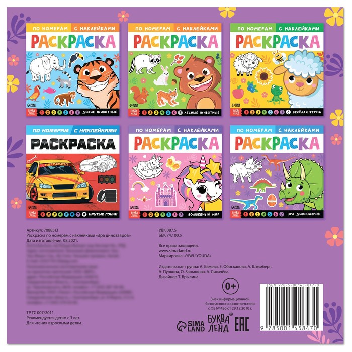 Раскраска по номерам с наклейками — это творческая книга с контурными картинками животных. Ребёнок сможет их раскрасить карандашами, красками или фломастерами. Страницы, обложка и наклейки выполнены из бумаги.