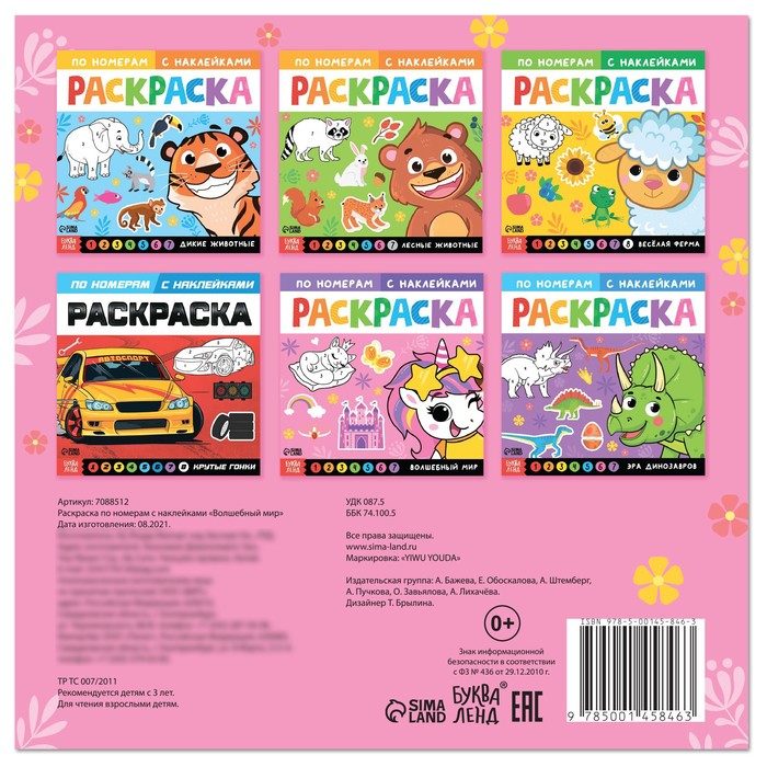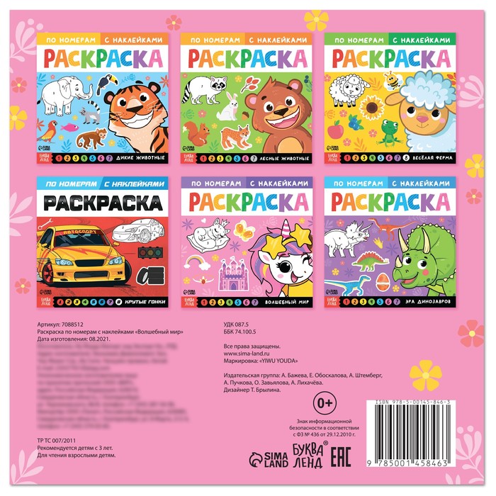 Раскраска по номерам с наклейками — это творческая книга с контурными картинками животных. Ребёнок сможет их раскрасить карандашами, красками или фломастерами. Страницы, обложка и наклейки выполнены из бумаги.